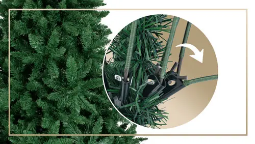 Cuenta con ramas de despliegue automático con bisagras permite un montaje rápido y sin complicaciones. Esta Fabricado con materiales retardantes de llama para mayor tranquilidad en el hogar.