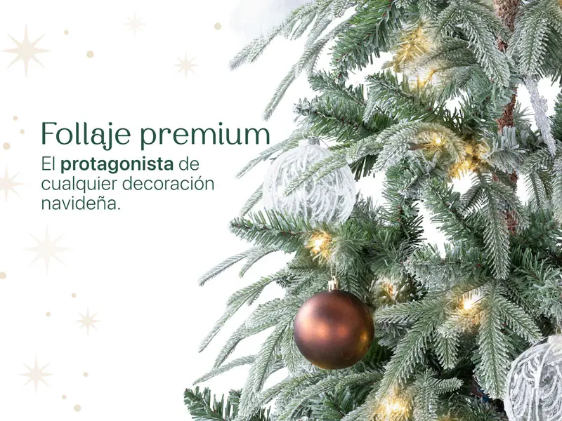 Diseñadas para uso en interiores, nuestros modelos con ramas mixtas de PE y PVC con escarcha conservan su forma y color con el paso del tiempo.