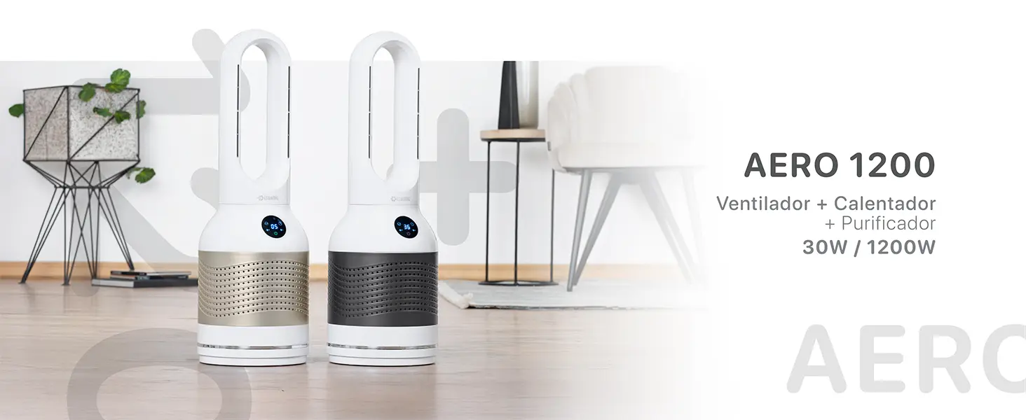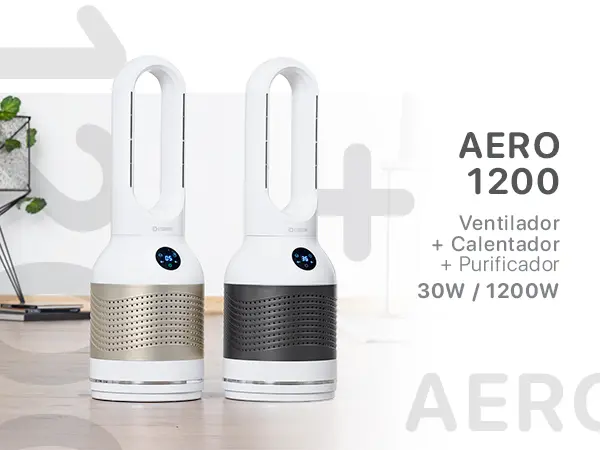 Respira confort y pureza con el Aero 1200. Un Ventilador sin Aspas 3 en 1  que calienta, ventila y purifica con elegancia y silencio, creando el ambiente perfecto todo el año.