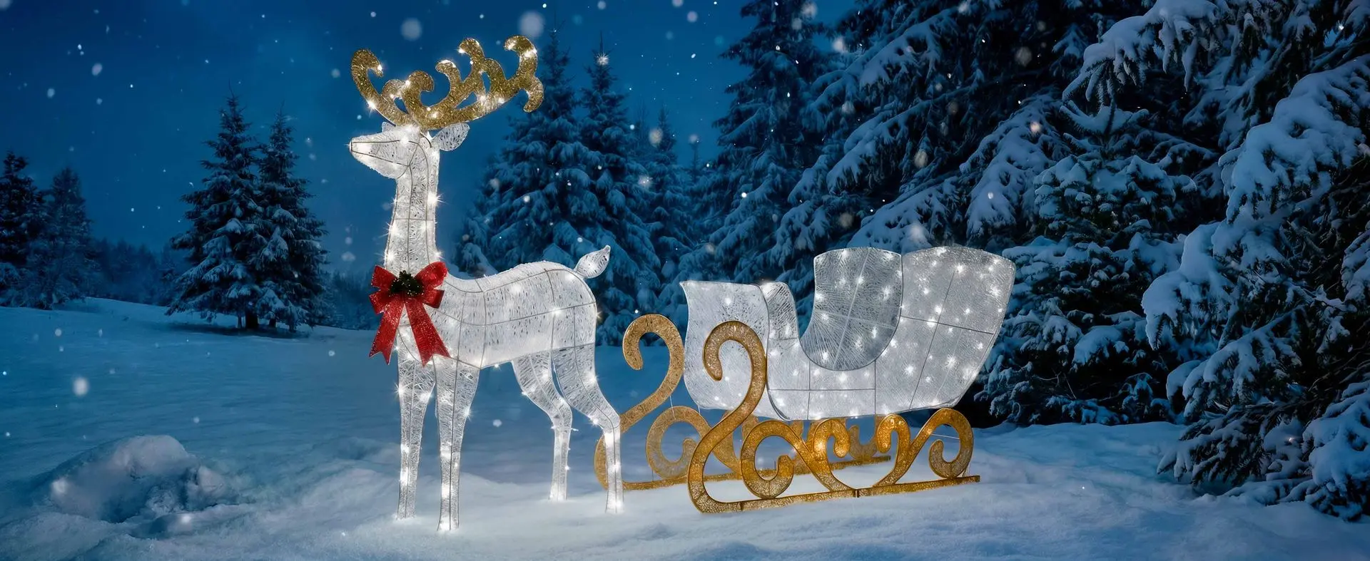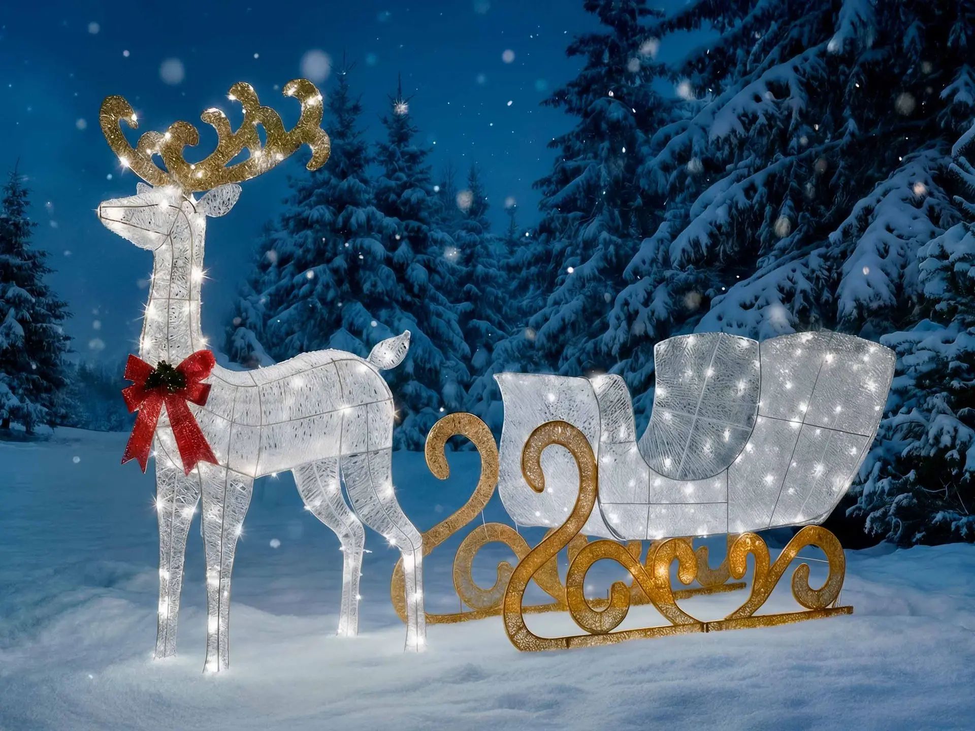 Adorno Navideño Exterior con Luces LED – Reno con Trineo Iluminado
