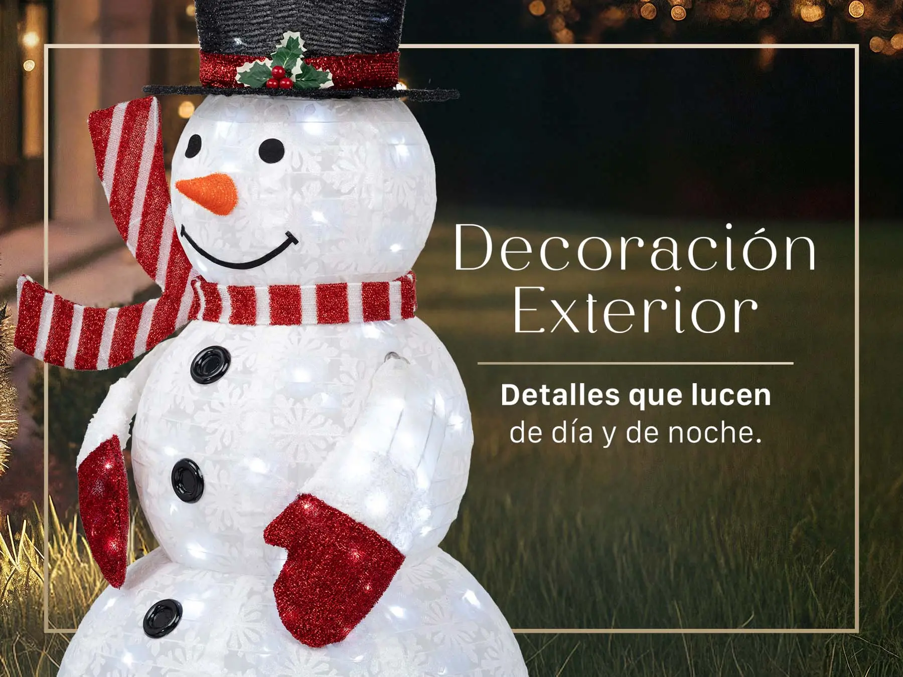 Este set de tres figuras en diferentes tamaños aporta profundidad y equilibrio visual a entradas, fachadas y jardines, convirtiéndose en la pieza central de tu decoración navideña exterior. Su iluminación LED de bajo consumo envuelve cada contorno con un brillo cálido y uniforme, mientras los detalles textiles y bufandas removibles suman color, textura y personalidad.
