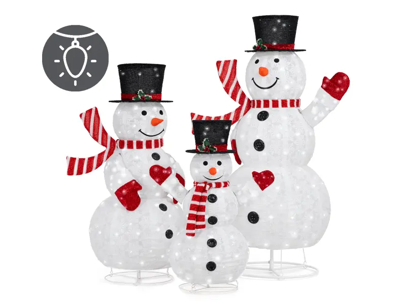 Familia de Muñecos de Nieve Decorativos con Luces LED