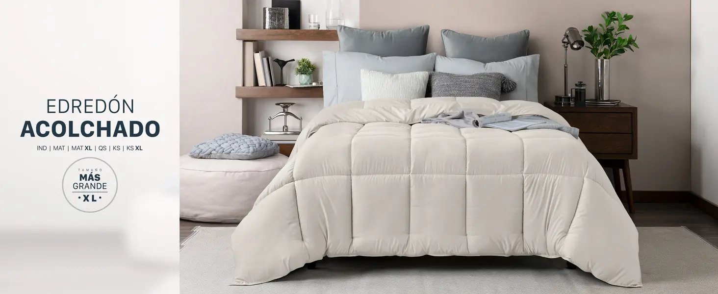 Capitonado antimovimiento que mantiene el relleno uniforme y en su lugar, incluso después del lavado. Construcción resistente diseñada para conservar volumen y forma.