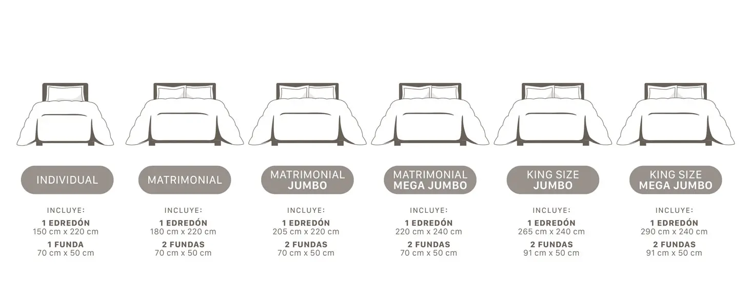Disponible en medidas Matrimonial Jumbo y King Size Jumbo, ofreciendo más cobertura que las medidas estándar.