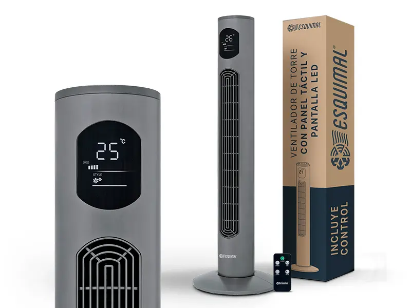 El Ventilador de Torre Silencioso Pantalla Led ofrece flujo de aire constante, oscilación de 90° y modos programables para que disfrutes de frescura uniforme y descanso sin ruidos, todos los días.