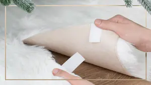 Para mayor estabilidad, hemos fusionado una tela tipo gamuza en el reverso que evita deslizamientos y asegura el pie de árbol a la superficie.