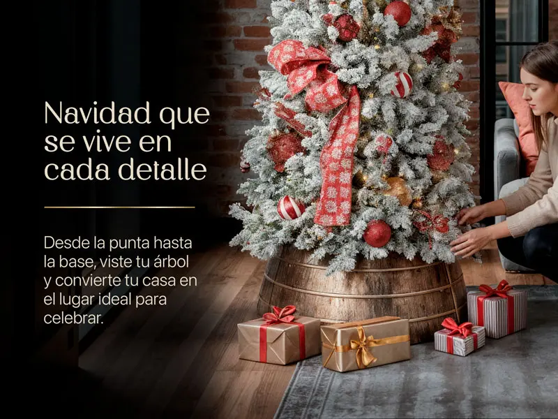 Su estructura envuelve la base del árbol y oculta cualquier elemento que pueda hacer que tu decoración luzca desordenada.