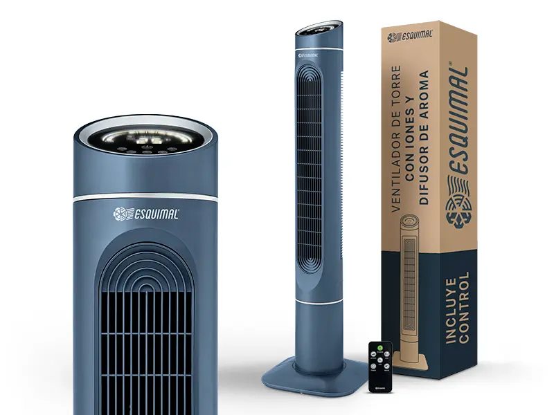 Descubre el Ventilador de Torre con Iones, una solución innovadora que combina ventilación potente, purificación del aire y aromatización en un diseño elegante y funcional.
